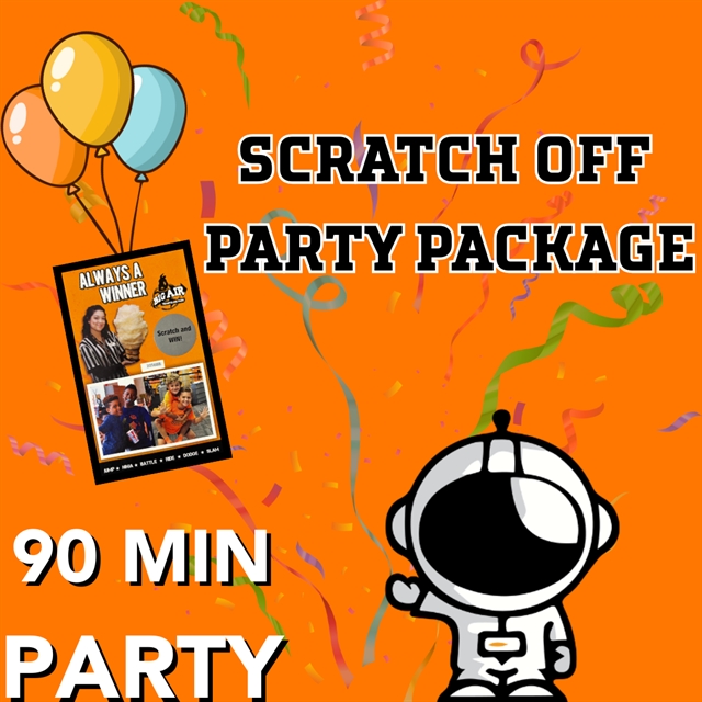 Add $80: 3 Pizzas, 2 Drink Flavors, Fruit Tray, Vegetable Tray, Choose Cookie Cake, Icees OR Dippin' Dots, Chose Tenders, Wings OR Cheese Sticks. Get 10 FREE birthday scratch offs! Everybody is a WINNER!